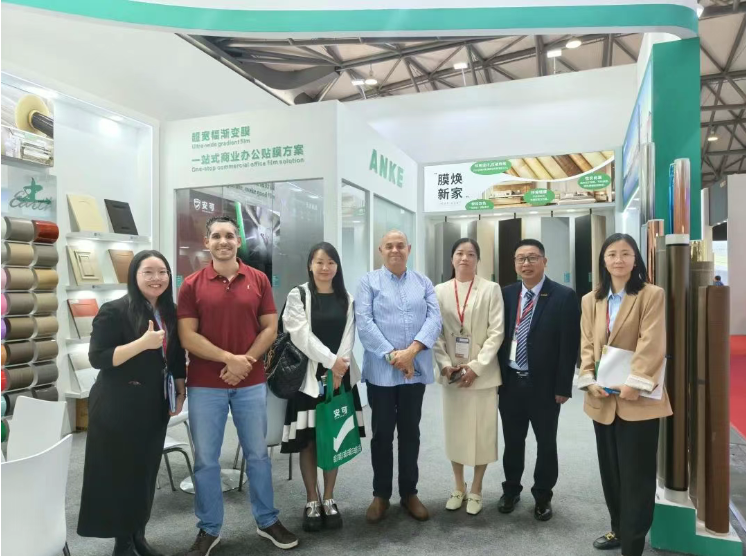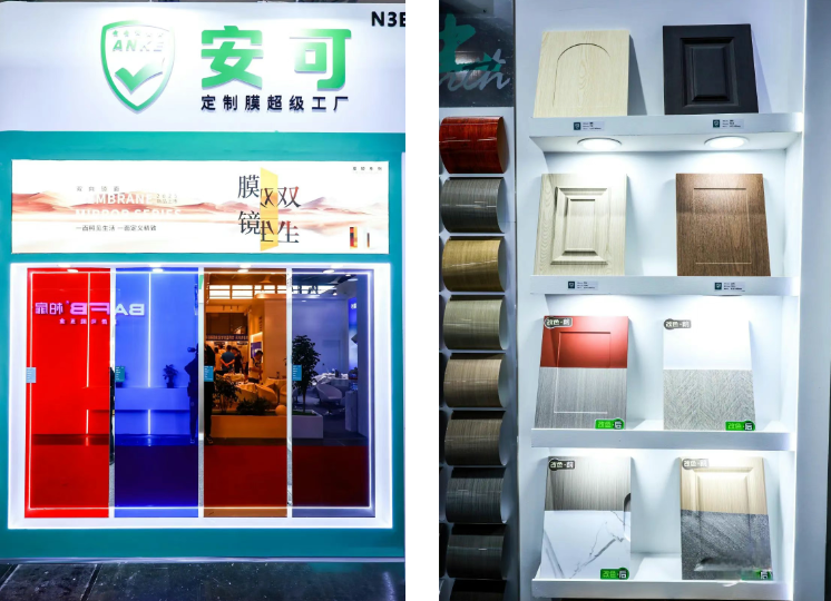 In questa mostra, ANKE, posizionato come "super factory per film personalizzati per tutti gli scenari", cinque nuovi prodotti in vetrina e prodotti a stella inclusi film decorativi in vetro ultra-largo da 2.4m, pellicole decorative per impiallacciatura di legno bionico, pellicole che cambiano colore per mobili e mattoni per moduli 3D, ridefinizione dell'estetica del film "di spazi per cucina e bagno.
